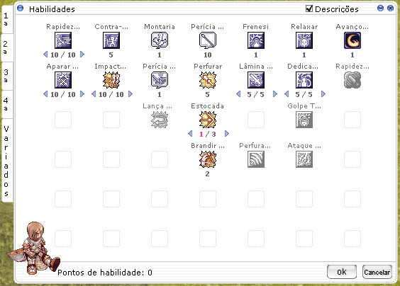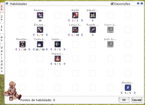 OBSERVAÇÃO IMPORTANTE: USE O SET PEUZ (obtido no NPC Ajudante do Iniciante) PARA UPAR ATÉ O LEVEL 200 COM A HABILIDADE VENTO CORTANTE. |